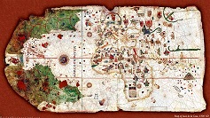 The earliest rounding of the Cape was disputed as 'impossible' by Greek mathematician / historian Ptolemy (100 - 168AD), who reasoned that Africa and Asia were connected, a general belief seen in early world maps, a notion which lasted until the Portuguese Dias' rounding of the Cape in 1488 and Vasco da Gama reaching India a decade later. The Portuguese first explored and mapped the entire African coastline in the 16th century. That Europeans knew the world was round is also shown in the first complete map of the world with America as separate continent, the Waldseemuller map of 1507. Portuguese explorer Serpa Pinto investigated the African continent between the west-coast Portuguese colony of Angola and Mozambique on the east coast between 1869 and 1879 (the Zambezi and Congo basins), receiving assistance from the missionary Francois Coillard, which allowed him to continue to explore the last terra incognita