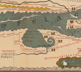 The Carthaginians were a Hamitic people, descendents of Canaan, son of Ham, son of Noah, descended from the mercantile Phoenicians of Tyre (so named by the Greeks, for their purple dye 'phoinix' (from which the name 'Punic'), they seem to have named themselves as being from Canaan) who founded Carthage (so named 'Qart-hadasht' or 'New City' in Phoenician, 'Karchedon' in Greek, 'Carthago' in Latin) in 814BC in Africa, as was their Afro-Asiatic language, Punic (so named by the Romans). The earlier inhabitants of North Africa were the Berbers (from the Greek 'Barbarians'), a white race, of many tribes, some nomadic, some settled, listed by Herodotus (~450BC, p344-350, Grene Transl.), with some very odd habits, also of Middle Eastern origin, Hamitic, of the Afro-Asiatic language group (as the original Egyptians are known to have been: Egypt is 'Misr' in Arabic, 'Mizraim' in Hebrew, also a son of Ham, grandson of Noah, and the Cushites (Cush was the eldest son of Ham, also grandson of Noah: Cushite is spoken south of Egypt in black Africa). Carthage, the bread basket of Rome, was conquered in three so-called Punic wars by the envious Romans (264BC-146BC), and eventually renamed Hadrianopolis (Africae) after emperor Hadrian (Adrianus) and is shown on the Peutinger parchment map of the 14th century, afer an original of the 4th.