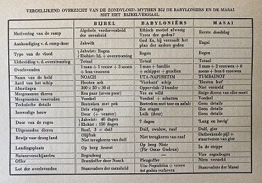 Comparison (in Dutch) of Biblical, Gilgamesh and Masai accounts of the Great Flood